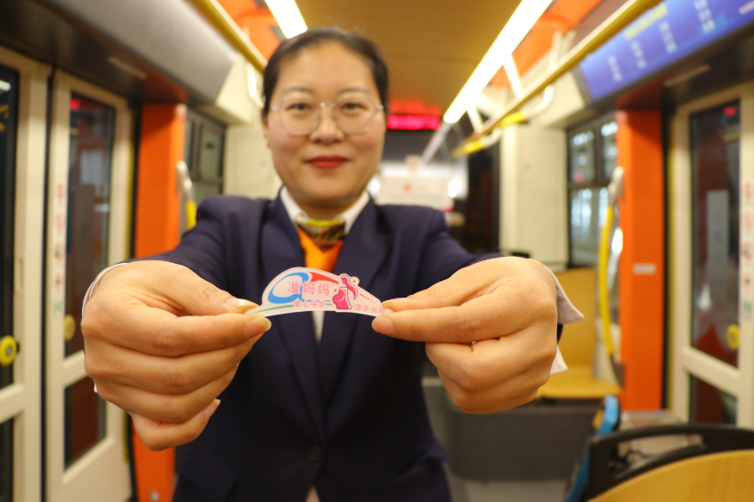 在“三八”國際婦女節(jié)來臨之際,青島有軌電車“巾幗志愿服務(wù)團隊”將目光聚焦到車廂里,根據(jù)不同乘客人群的乘車需求,高度匹配精準(zhǔn)化服務(wù),為女性乘客打造了一列“女性友好”主題車廂。3月8日當(dāng)天,記者看到,有軌電車車廂里為哺乳期媽媽安裝了移動式母嬰簾,為寶媽提供了安心的車廂一隅。為帶孩子乘車的乘客準(zhǔn)備了“愛心媽媽包”,里面裝有紙尿褲,濕巾,紙巾,衛(wèi)生用品等。為乘車哭鬧的兒童準(zhǔn)備了“乖乖兒童魔法袋”,里面裝有孩子們喜歡的小粘貼,小汽車等玩具。為孕期準(zhǔn)媽媽制作了“準(zhǔn)媽媽”胸牌,方便熱心乘客辨認身份為其讓座,車廂乘務(wù)員在服務(wù)過程中也會給予特別關(guān)注和照顧。